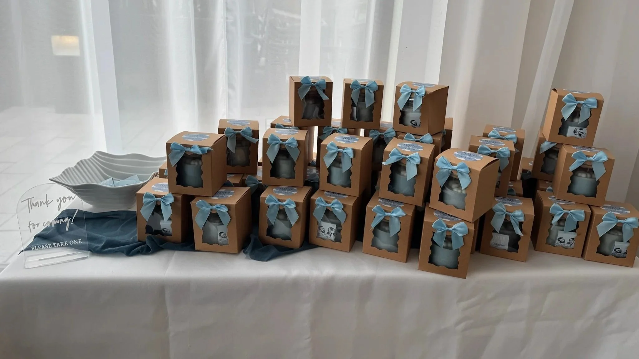 The candles were packaged into favor boxes.