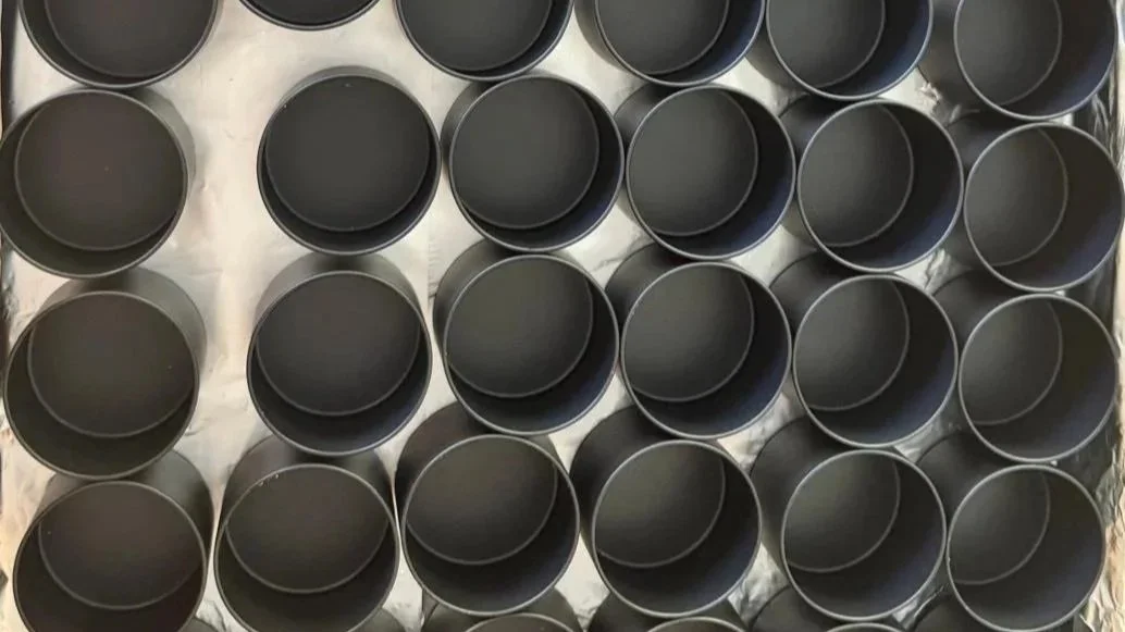 Matte black tins, ready to pour.